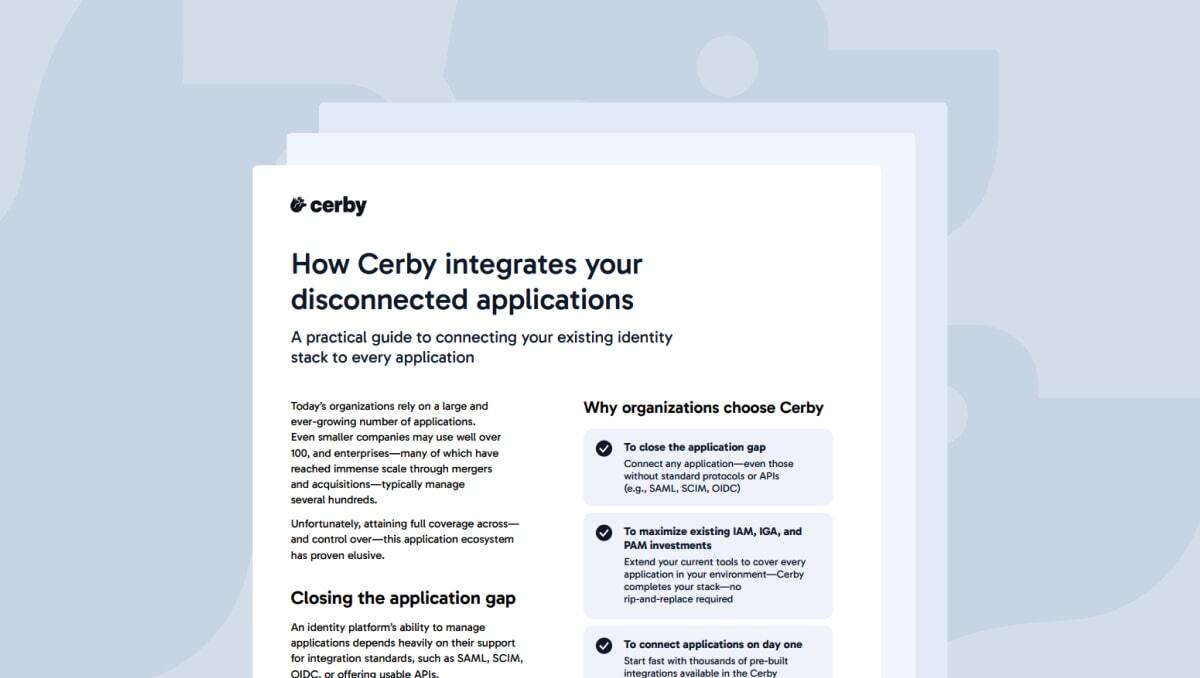 Traditional identity tools only go so far. Cerby fills the gap by integrating the applications your IAM, IGA, and PAM systems can’t reach—without requiring native protocols or expensive enterprise plans. Learn how Cerby’s purpose-built platform connects every application in your environment, extends your existing tools, and adapts to application changes in.