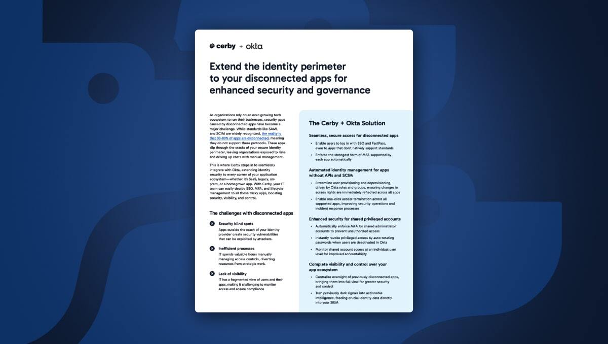 As organizations rely on an ever-growing tech ecosystem to run their businesses, security gaps caused by disconnected apps have become a major challenge. While standards like SAML and SCIM are widely recognized, the reality is that 30-80% of apps are disconnected, meaning they do not support these protocols. These apps slip through the cracks of your secure identity perimeter, leaving organizations exposed to risks and driving up costs with manual management.